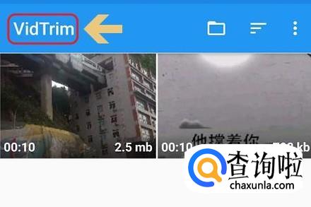 然后我们去手机应用市场下载一款名为“VidTrim”的音乐提取APP,安装以后打开它会自动抓取手机里的所有视频文件,如图所示...