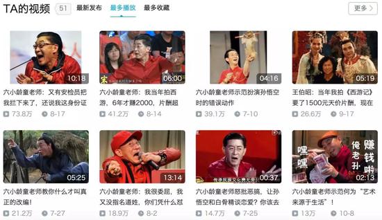 现在不仅是读图时代,也是短视频的时代。有备注“西游记爱好者,六学研究协会一级会员”的B站up主,对六小龄童所有的视频资料进行了分类汇集和剪辑,制作了海量病毒视频。而这这些无聊,成为网络时代吃瓜群众的欢乐之源,这些视频的传播进一步消解了六小龄童的神话,一个借由经典角色树立的人设就这样崩塌了。
