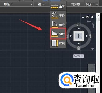 点击实用工具选项在其子级菜单里找到面积选项,如图所示:
