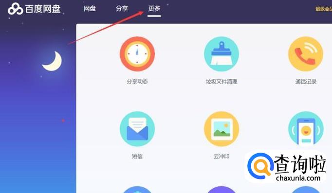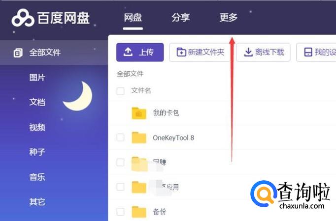 登录到自己的云盘以后,点击最右边的更多。