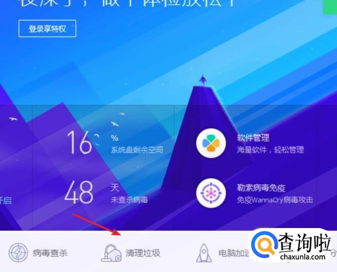 首先,点击打开电脑管家,点击下方的‘清理垃圾’。