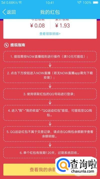 点击“立即领取”,就可以得到一个运动红包。