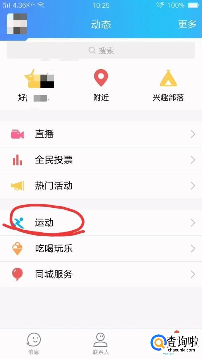 点击“动态”,在列表中选择“运动”。