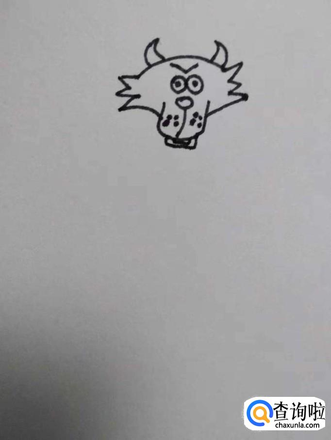 画出狼的五官。狼五官比较集中,两只眼睛更是几乎紧紧挨着。眼睛鼻子嘴巴都紧凑的排在头部中心线位置。狼的鼻子适当的大一些,让狼的脸比例更协调,自然。