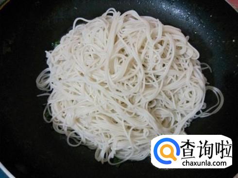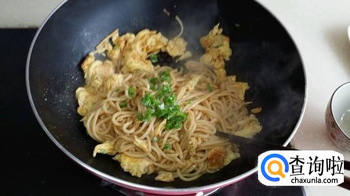 锅中放入适量植物油,油热后打入鸡蛋,将鸡蛋煎熟后倒入煮好的面条,放入适量盐,十三香,要不断翻炒,因为面条容易粘锅。