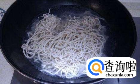锅中倒入适量水,水开后将面条加入锅中,煮两分钟后捞出,冷水冲洗一下控干水分备用。