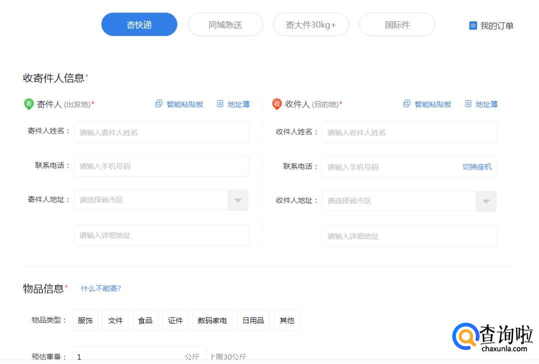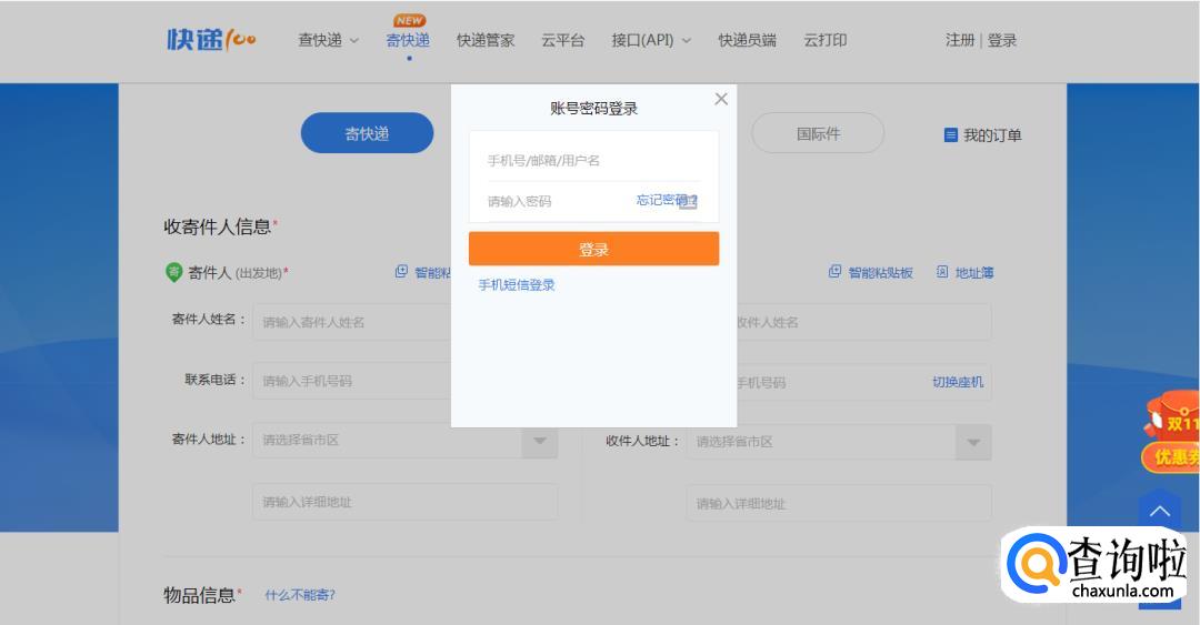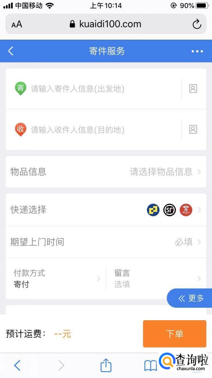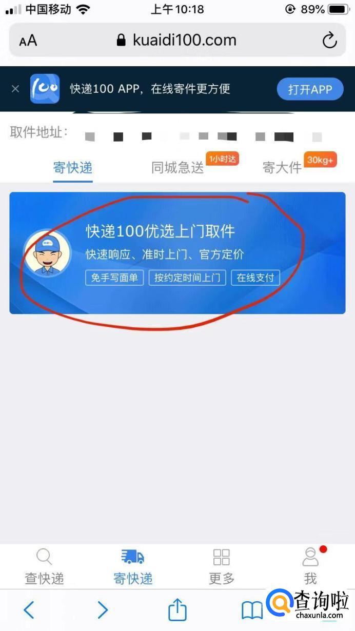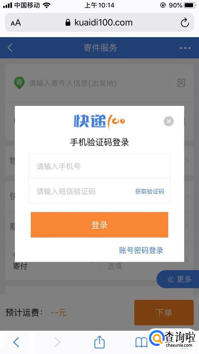 手机可以点击快递100优选上门取件,需要用手机验证码登录即可