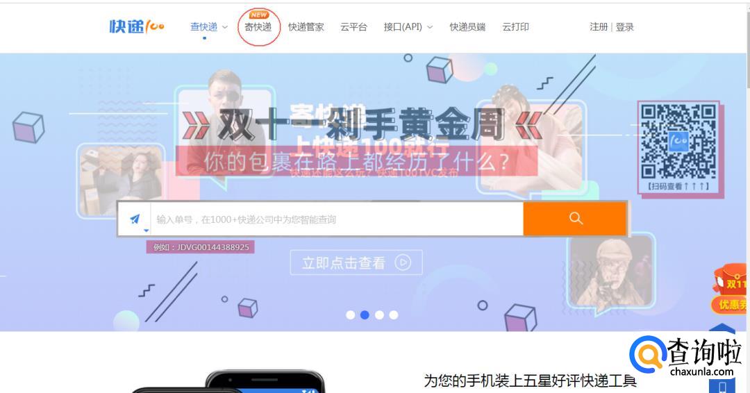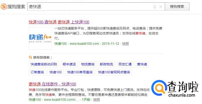 打开搜狗浏览器,输入“寄快递”。点击“快递100”