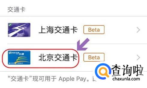 点击该图标就会跳转到苹果Pay界面,我们点击下方的“继续”,然后在添加的卡片类型里即可看到有“北京交通卡”这一项了;