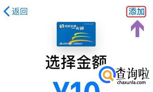 选择北京交通卡之后,就来到了充值界面,我们至少需要充值5元以及20元的手续费,然后点击右上角的“添加”;