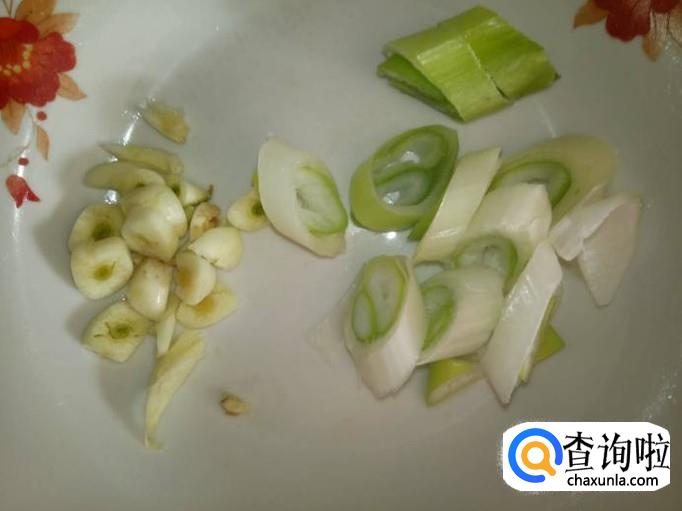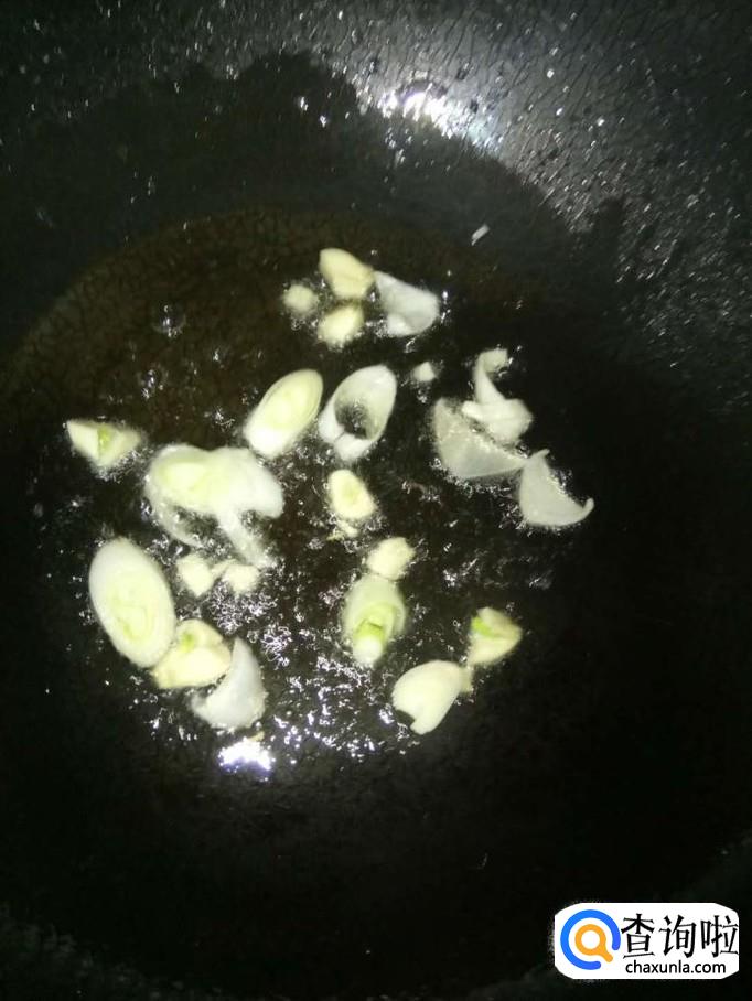 开火,加入适量的食用油,将大葱和蒜头放入锅里,炒香;