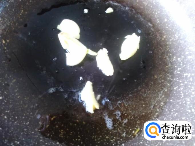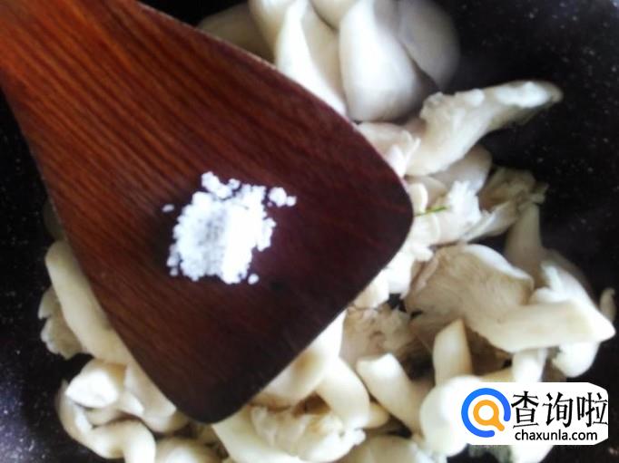 开火下油,放蒜米进去爆出味来,平菇下锅,加适量的盐。