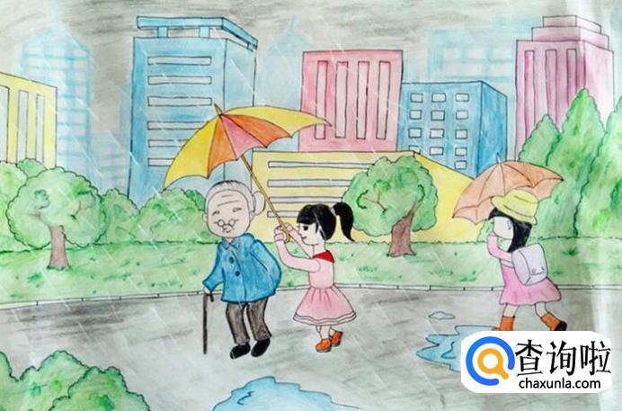 下雨天,一位小女孩主动的给没有带伞的老人家打伞,这是多么温柔的举动。