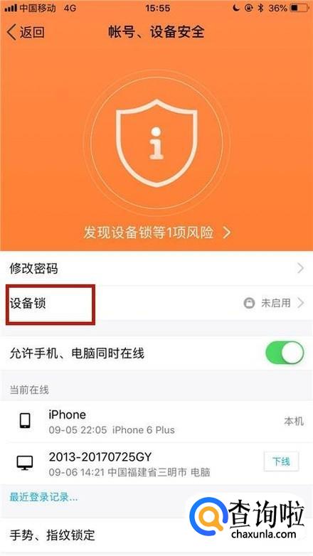 接着点击设备锁,如下图所示。