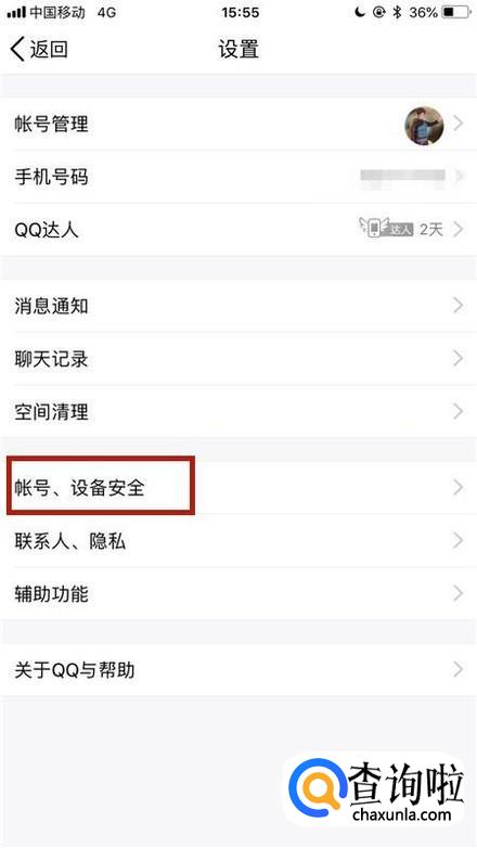然后点击账号、设备安全,如下图所示。