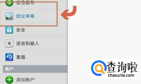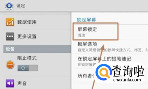 点击设置选项以后,在屏幕左侧依次点击“锁定屏幕”-“屏幕锁定”;