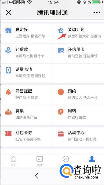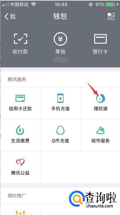 在钱包里面会看到第三个理财通的入口,点击一下。