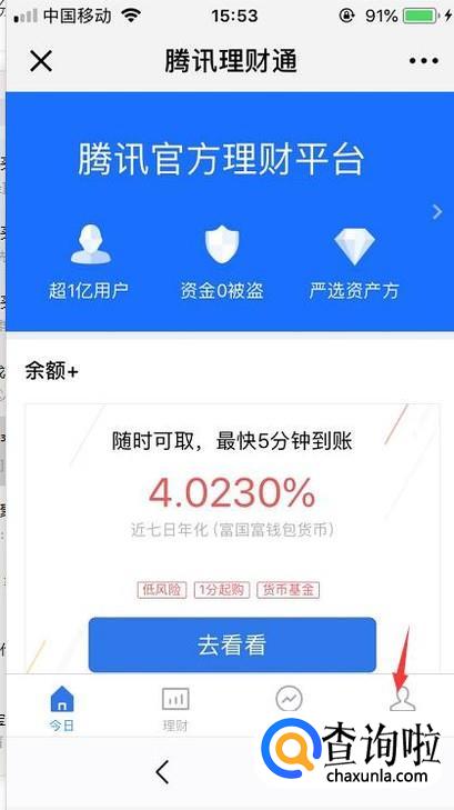 进入理财通首页后我们可以大概了解一下,然后点击我的进入到个人页面。