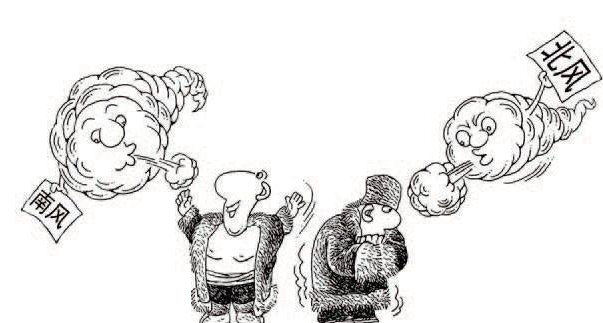 法国作家拉封丹曾写过一则寓言,讲的是北风和南风比威力,看谁能把行人身上的大衣脱掉。北风首先来一个冷风凛凛、寒冷刺骨,结果行人为了抵御北风的侵袭,便把大衣裹得紧紧的。南风则徐徐吹动,顿时风和日丽,行人因为觉得很暖和,所以开始解开纽扣,继而脱掉大衣。结果很明显,南风获得了胜利。拉封丹这则寓意深刻的寓言后来成为社会心理学的一个概念,被称之为“南风效应”、“南风法则”或“温暖法则”等。