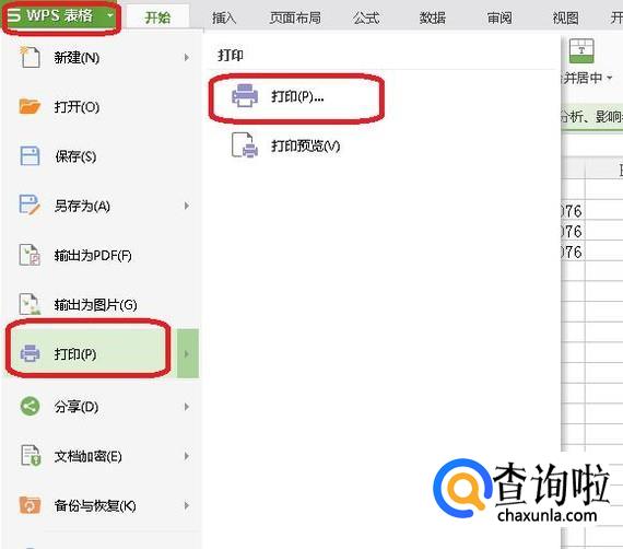 然后,我们点击菜单栏“WPS表格”,在下拉菜单中选择“打印”,“打印”,调出打印面板。