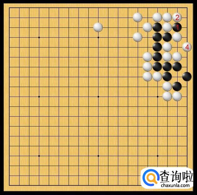 黑棋先行,黑棋于右上角黑1处断,黑棋试图通过黑1对白棋底边的分断来制造混乱,以便黑棋在乱中取胜。如图所示。