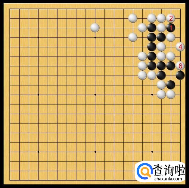 白棋随即就在白6处提掉了黑5,化解了黑棋的打吃。现在,白棋需要粘上黑5这个点才能确保底线安全。如图所示。
