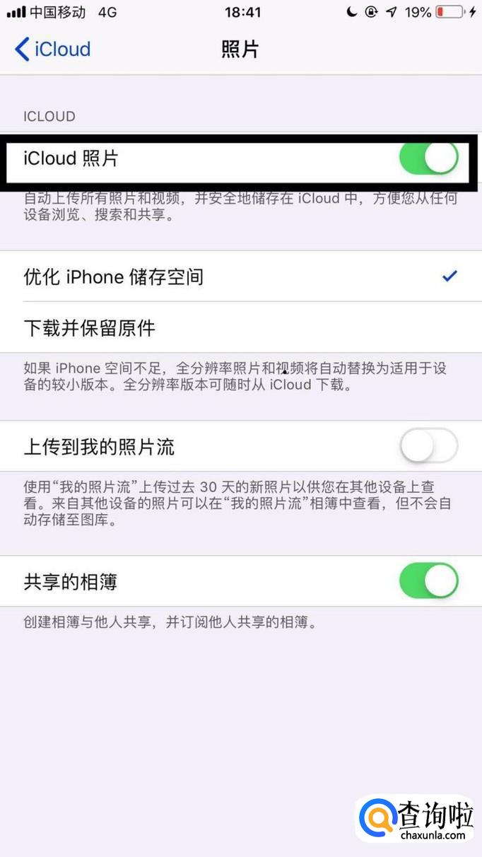 最后点击开启iCloud照片开关就可以了。这样设置完iCloud中的照片就会同步到苹果手机上了。