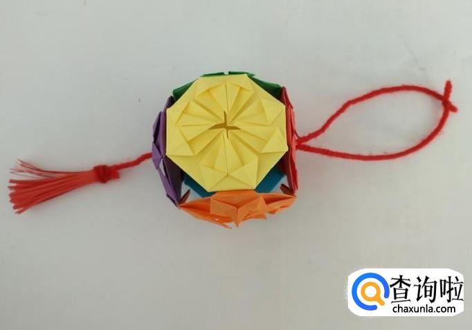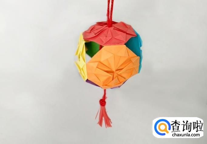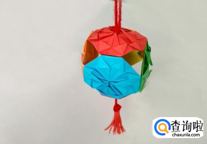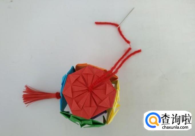 将红线多余部分剪掉后把挂线打结,灯笼就做好了。