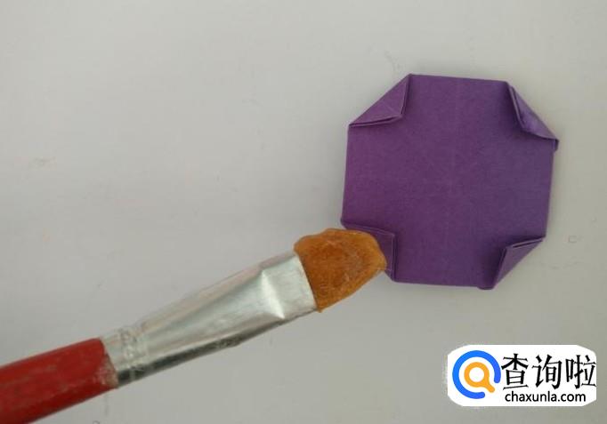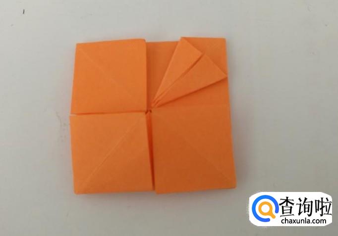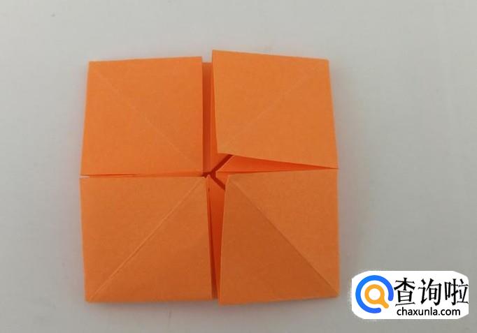 将外侧的正方形折向中间,然后把相邻的角粘上。