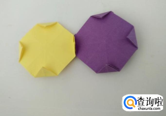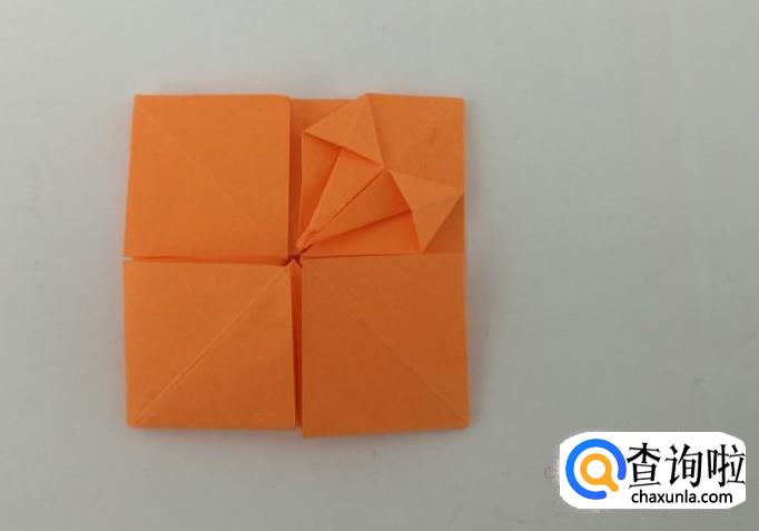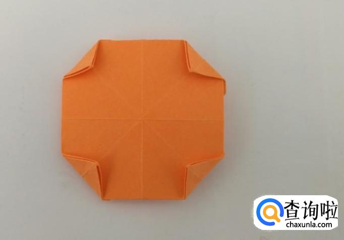 翻过折纸,把四个角向内折好。