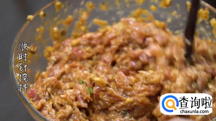 接着,打一个鸡蛋到肉糜里,再放入姜末,葱花、藕末、香菇丁,然后放入盐、白糖、香油、生抽、蚝油、老抽和料酒,用筷子顺时针搅拌均匀后,静置片刻。