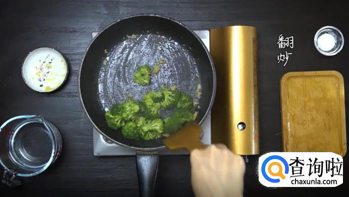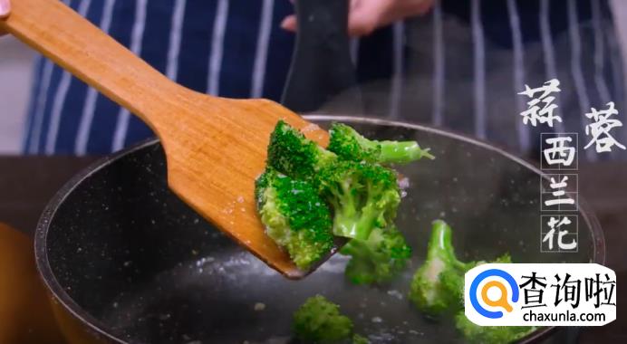 接着,加入适量清水和盐,继续翻炒均匀。这道蒜蓉西兰花就可以出锅了。