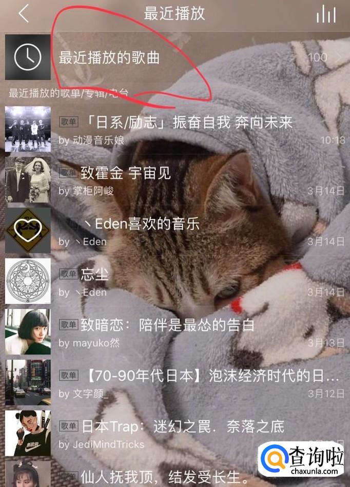 点进“最近播放”页面。然后点击“最近播放的歌曲”。