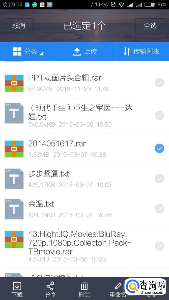 除此之外,我们还可以选择先把文件下下来然后再使用手机自带的解压器打开压缩文件。我们选中文件然后点击下载。