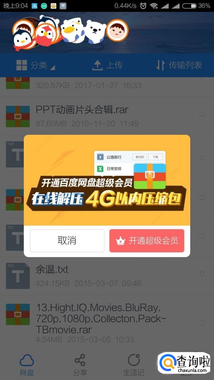 先在百度网盘里面找到一个压缩文件,这时候直接打开是不可以的,除非是开通超级会员才能够打开。