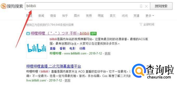 首先你需要在搜狗里搜索并打开 bilibili ,如下图。