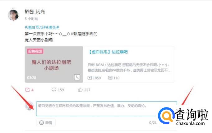输入自己想要说的话转发动态就行啦。