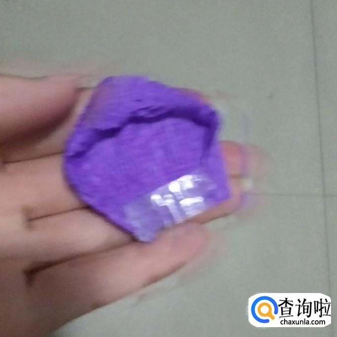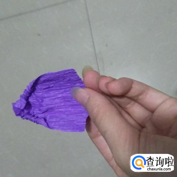 做好后的正面和反面分别如下图一、二,然后我们沿着刚刚的折痕的下端的反面刮皱纹纸,使其成如下图3所示的花瓣状。
