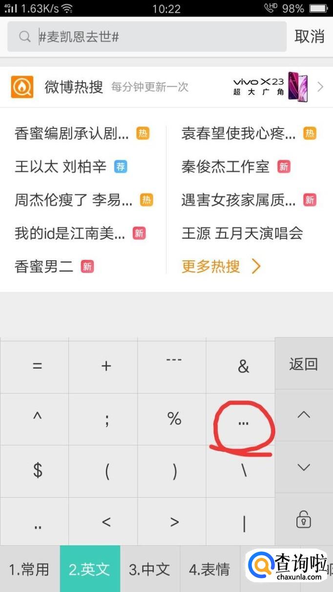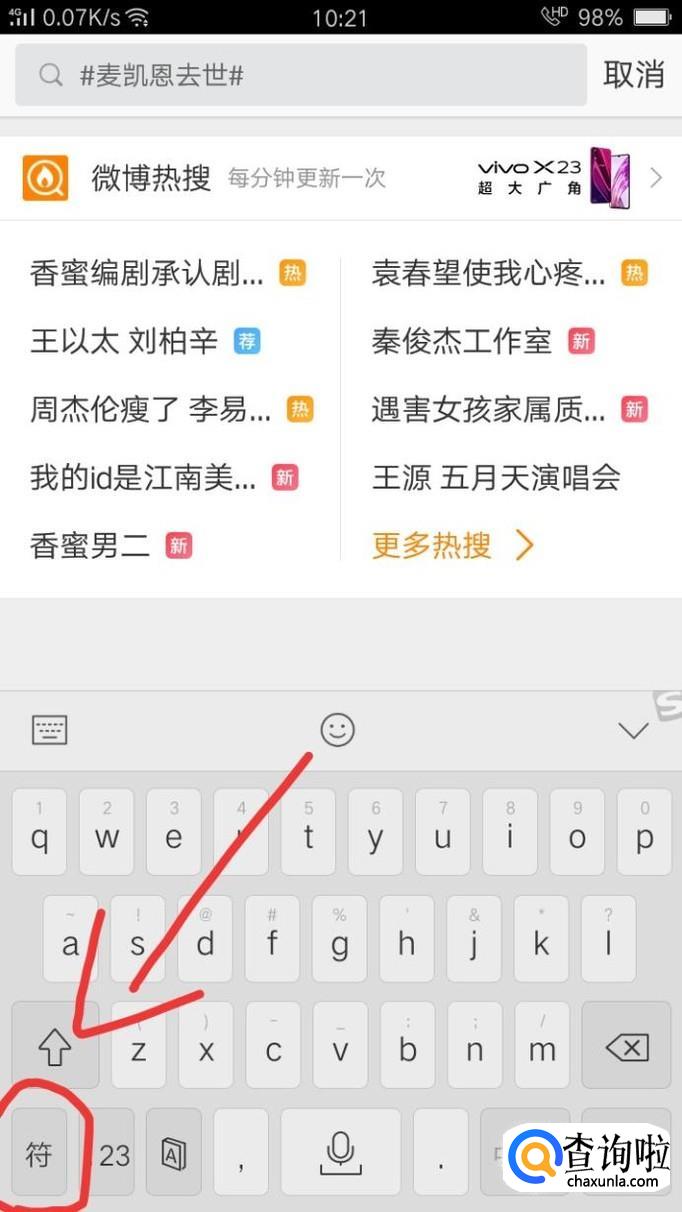 点击搜狗输入键盘上的“符”按钮。