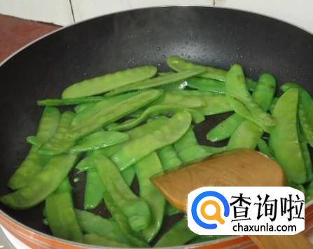 将荷兰豆放入锅中,加入适量的盐,用铲子翻炒均匀。