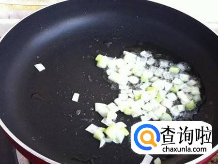 锅中放入食用油,烧热后,放入葱花炝锅。
