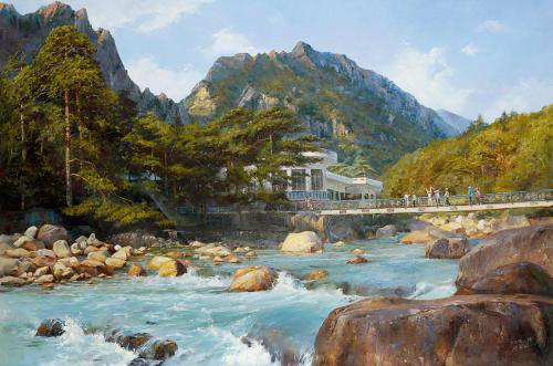 金刚山是“山中之最”,它峰外有峰,雄峻奇伟,飞瀑万千,碧潭盈盈,实在壮观,一万二千峰顶各呈奇状,连山绵谷,万石如林,奇怪迭出,有着无数的石门、洞窟、峭壁、峡谷。金刚山的山水,它的奇拔秀逸的确甲天下。