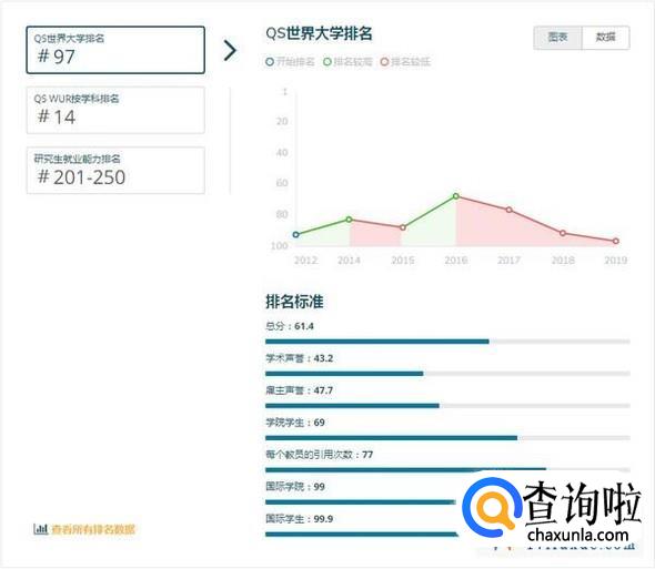 注:QS世界大学排名是世界公认最具影响力的全球性大学排名之一,主要评价指标为:学术领域的同行评价(40%)、全球雇主评价(10%)、单位教职的论文引用数(20%)、教师/学生比例(20%)、国际学生比例(5%)、国际教师比例(5%)