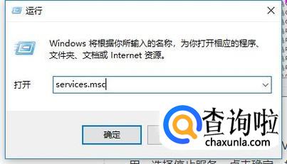 这时会弹出一个运行框,在输入栏里输入services.msc,点击确定。