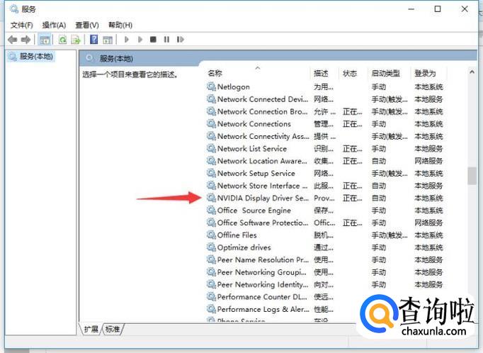 这样我们就打开了我们的本地服务系统,在服务列表里下滑滚动条,并找到NVIDIA Display Driver Service。