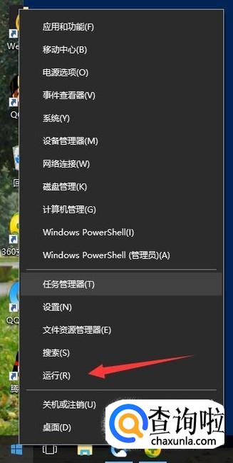 首先,右键单击电脑下端任务栏最左边的windows图标,在弹出的选项中,找到“运行”,并用左键单击。