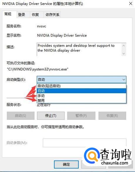 但是如果想要设置NVIDIA显卡的自动启动,则应该点击启动类型的下拉菜单,在下拉菜单里就可以设置NVIDIA显卡的启动方式了。