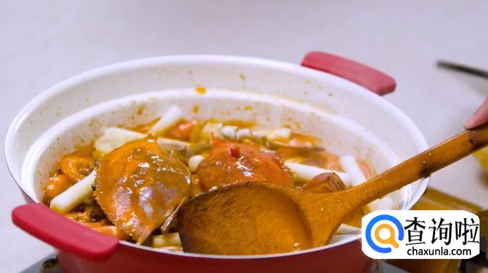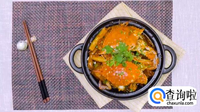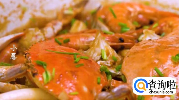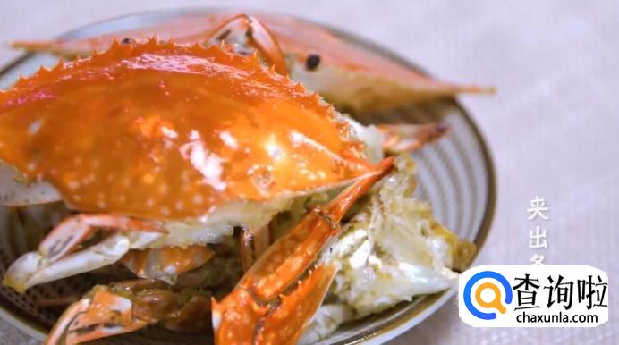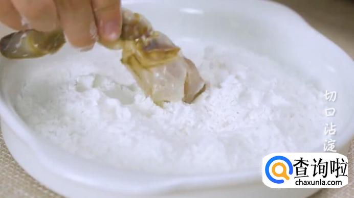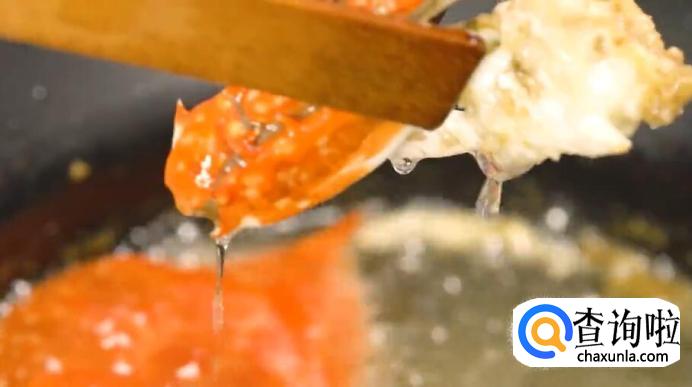 油温烧至七成热,梭子蟹切口沾淀粉,放入油锅,炸至红色。