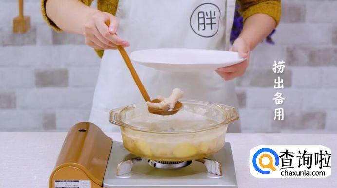 鸡爪和姜片放入水中,焯水后捞出备用。