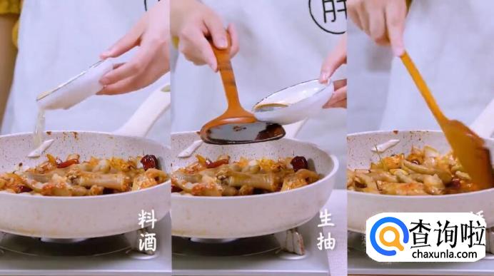 再放入腐乳、鸡爪、料酒、生抽、蚝油,翻炒上色。
